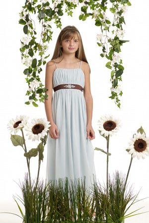 20351 Published July 19, 2015 at 300 × 450 Bari Jay 20351 age 10 Misty blue Sweetheart ruched empire, contrast belt w/ trim, flyaway overskirt