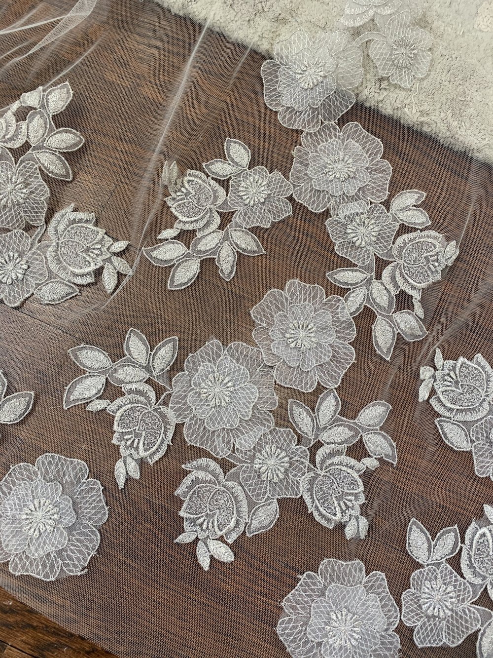 9857 Published July 31, 2021 at 1000 × 1333 Liancarlo Long illusion tulle veil with floral organza cut work