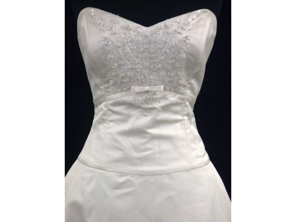 Amsale Published August 15, 2013 at 1024 × 768 Amsale sz10 Silk satin gown with floral embroidery and small bow at bust