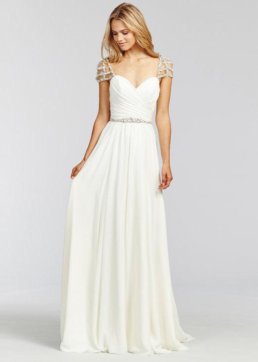 anouk Published December 12, 2020 at 514 × 720 Hayley Paige Anouk sz12 Chiffon with a draped crossover bodice, sweetheart neckline and low scoop back. Beaded cap sleeve and belt.