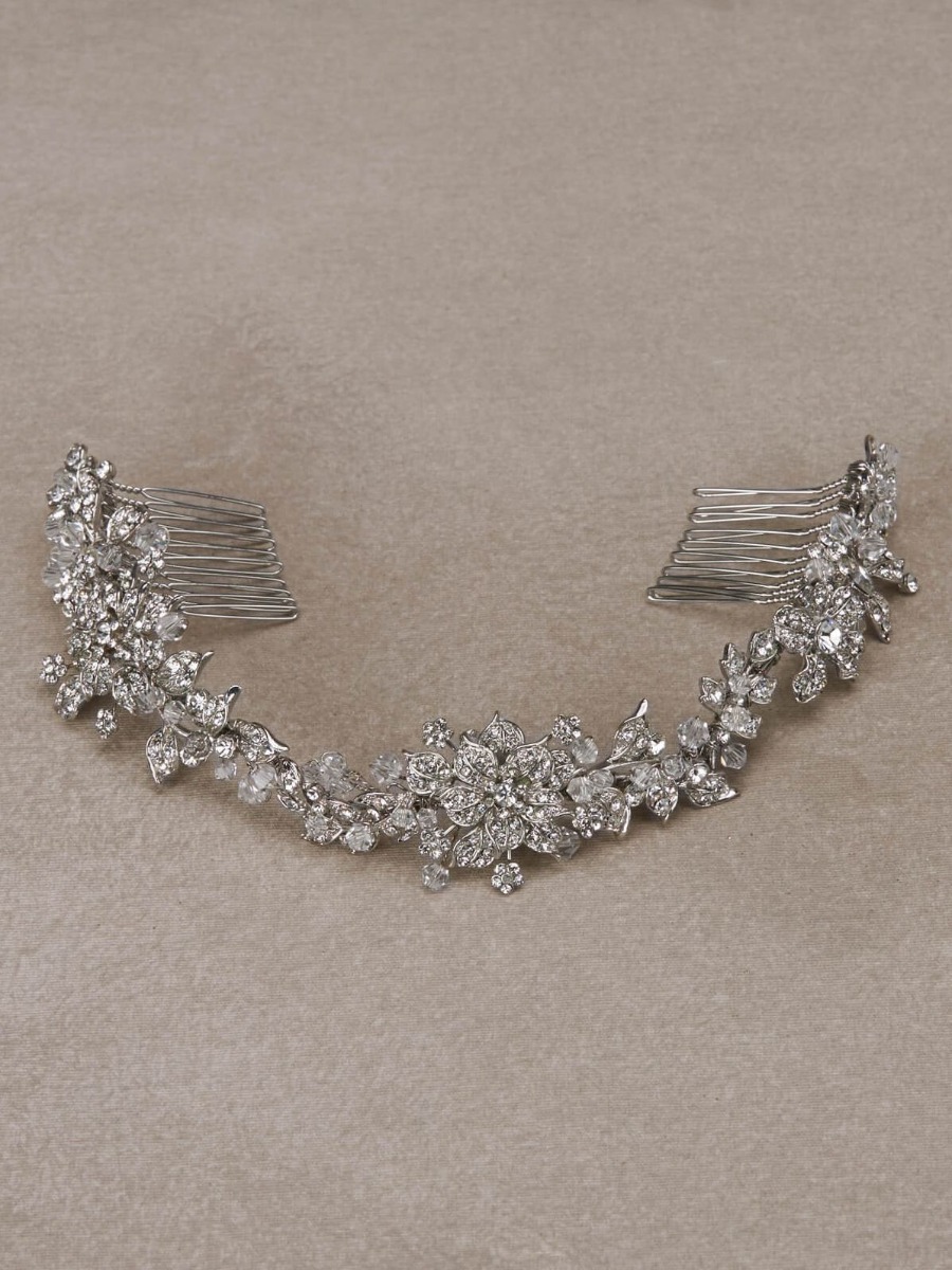 Armeria Published October 26, 2022 at 900 × 1200 Silver Double Floral Hair Comb with Rhinestones and Beads