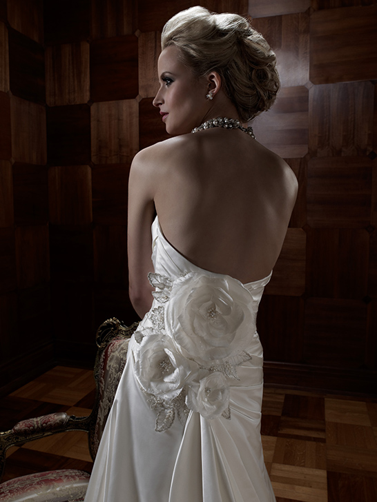 b032 Published July 9, 2013 at 546 × 728 CB Couture B032 sz10 Modified A-Line gown, made out of Duchesse Silk, with a soft sweetheart neckline. Flowers decorate the back