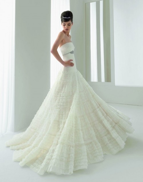 denise Published July 1, 2014 at 500 × 636 Aire Barcelona Denise sz14 Swiss dot netting and mini ruffles on skirt. Swarovski beaded trim at bust