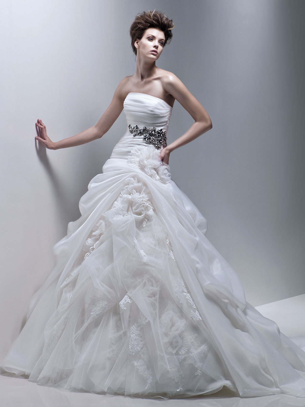 ferryn Published December 31, 2017 at 1200 × 1601 Enzoani Ferryn sz10 Silky Organza, pick up skirt with flowers and draped lace.