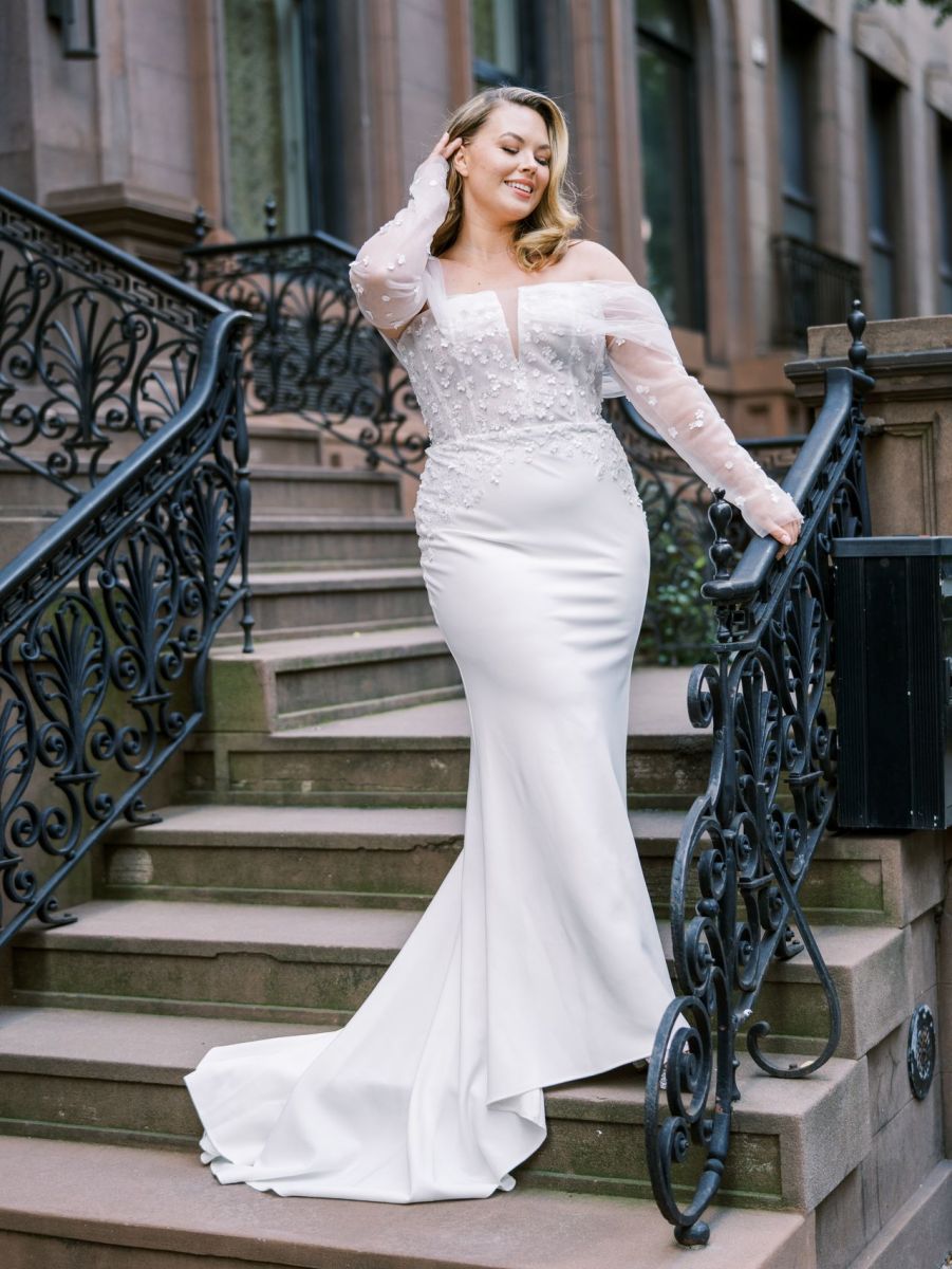 harley Published November 17, 2025 at 1280 × 1705 La Curve Harley sz20 Crepe fit skirt with lace embroidery and off shoulders (no sleeves)