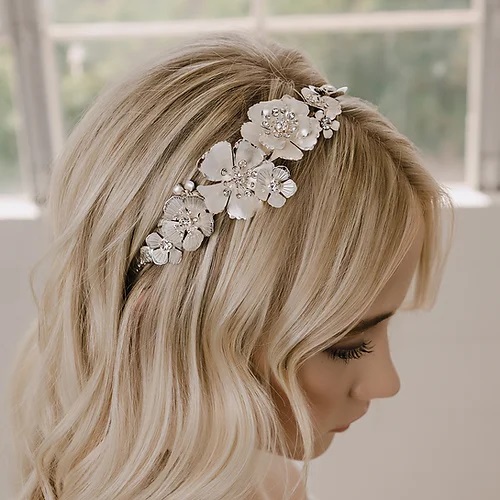 HB2110 Published October 26, 2022 at 500 × 500 Rhodium plated flower headband with rhinestones accents