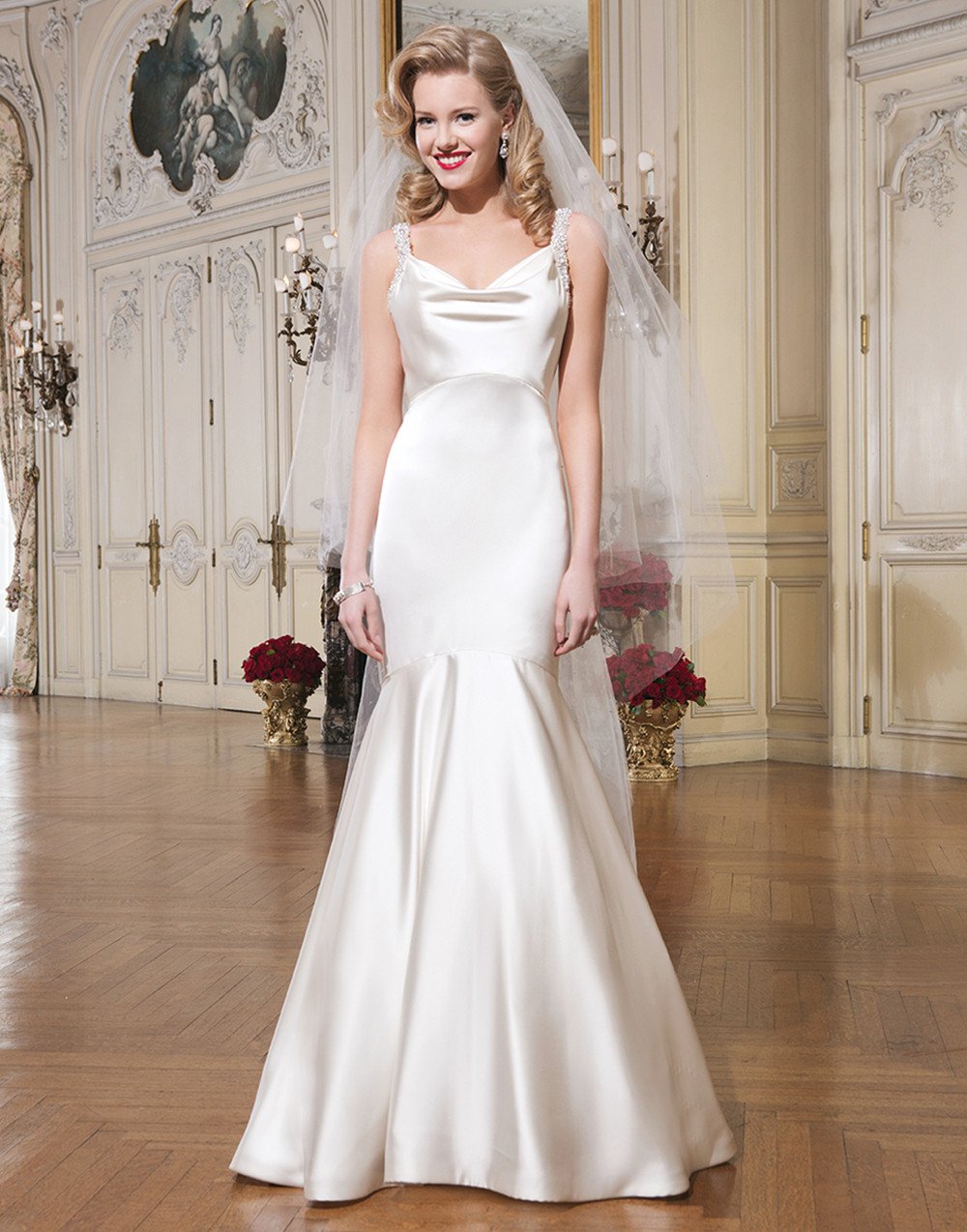 8756 Published July 14, 2019 at 1000 × 1274 JA8756 sz8 Luxe charmeuse mermaid dress with beaded straps and accentuated by a soft cowl neckline. Low back