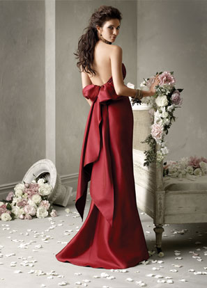 5784 Published October 24, 2014 at 297 × 414 Jim Hjelm 5784, sz 12 Scarlet Satin-faced taffeta strapless gathered bodice, sweetheart neckline, natural waist, ties at back.