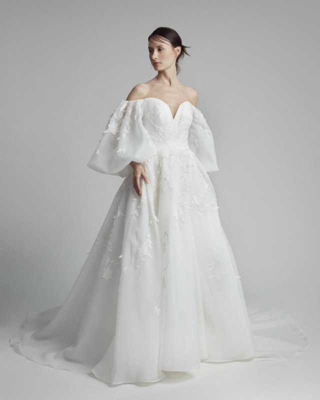 Marley Published November 18, 2025 at 640 × 800 Beccar Couture Marley sz10 dramatic puff sleeves, delicate botanical embroidered lace