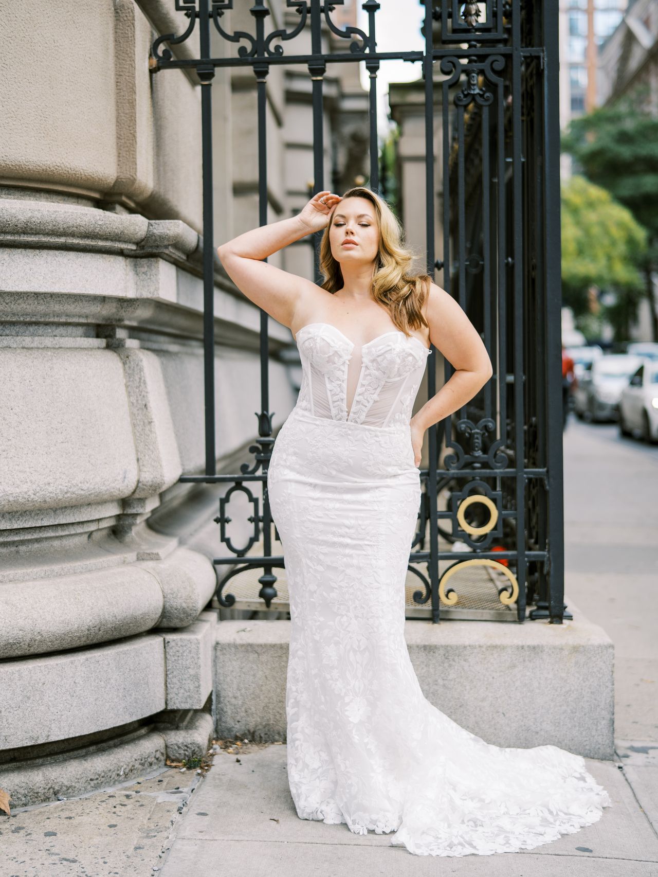 mercy Published November 17, 2025 at 1280 × 1705 La Curve Mercy sz24 Lace fitted gown with corset look bodice. Matching veil available