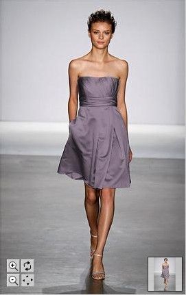 1502 Published July 22, 2013 at 271 × 431 Priscilla of Boston 1502 sz8 Satin strapless knee-length dress with diagonally draped bodice and full skirt.