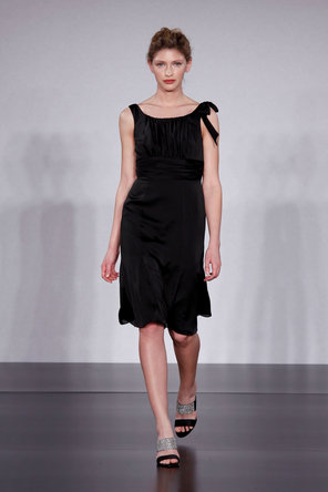 1517 Published July 22, 2013 at 296 × 444 Priscilla of Boston 1517 Marine sz8 Knee length satin dress with front pleats and sash down the back from one strap.