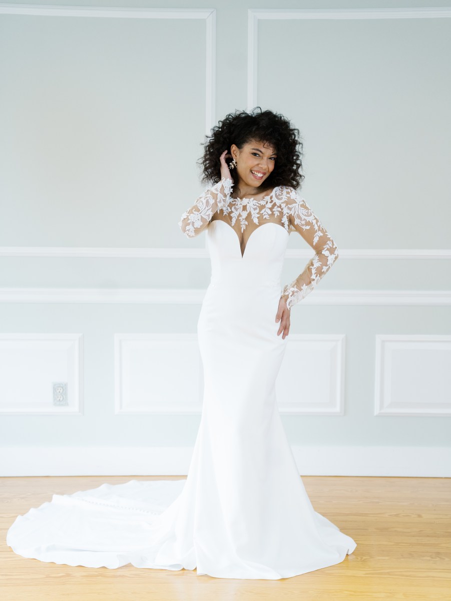 TWD 8 Published December 19, 2024 at 4587 × 6111 TWD8 sz10 Crepe fitted gown with embroidered lace ilusion and long sleeves