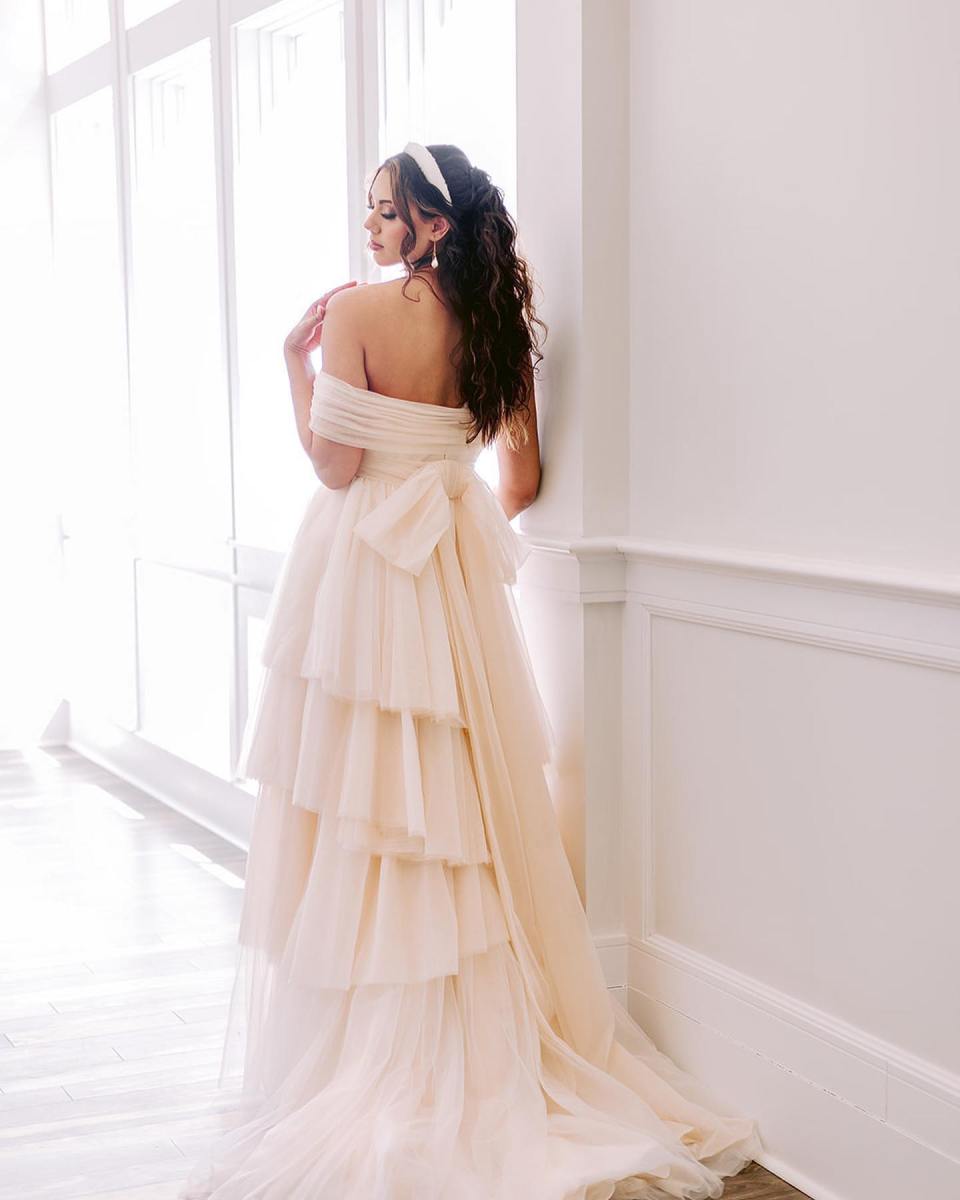 rosie Published November 13, 2025 at 1440 × 1800 One Styled Bride Rosie sz12 Beautiful movement in layered skirt, back bow. Shoulder detail