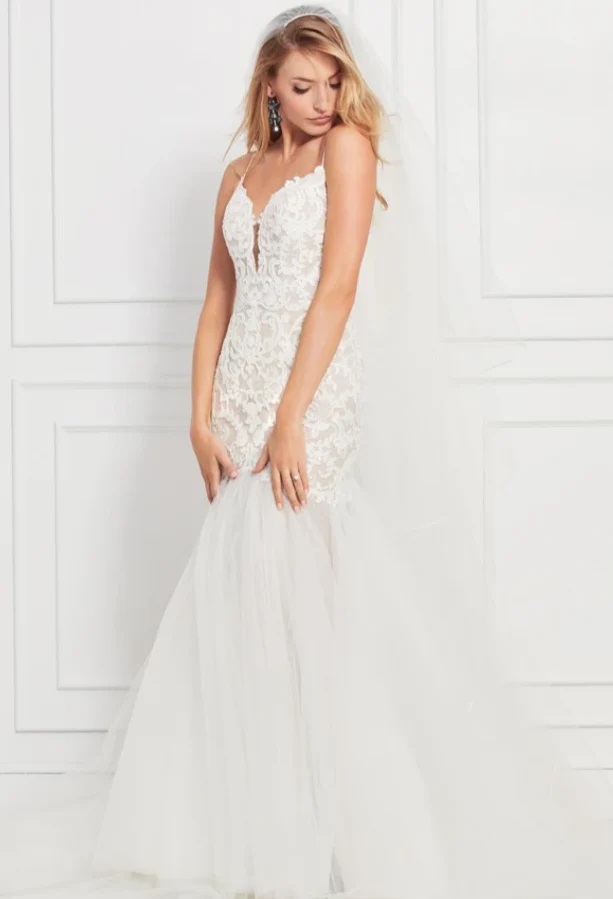 synclaire Published August 20, 2024 at 613 × 899 Wtoo Synclaire sz10 Beaded lace fit & flare gown with a tulle skirt, spaghetti straps and low back.