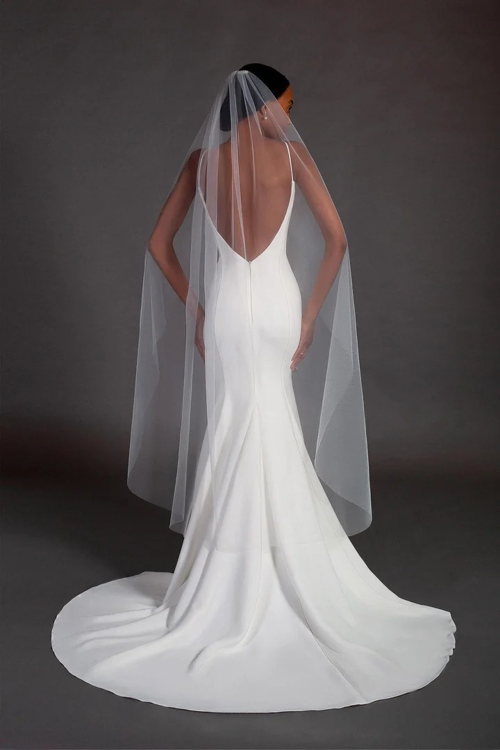 TG1000L060 Published July 14, 2025 at 720 × 1080 TG1000L060 Soft and simplistic, this waltz length veil is cut with a raw edge. 60″ Flutter cut