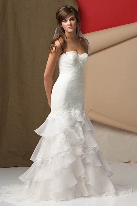 cabo Published June 17, 2015 at 440 × 661 Watters Cabo sz12 Lace and silk-washed organza strapless gown with lace bodice and tiered organza ruffled skirt.