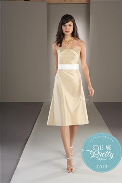 2982 Published May 1, 2013 at 250 × 374 Watters 2982 sz10 Silk Shantung strapless knee-length dress with tucked neckline and silk shantung obi sash at waist.